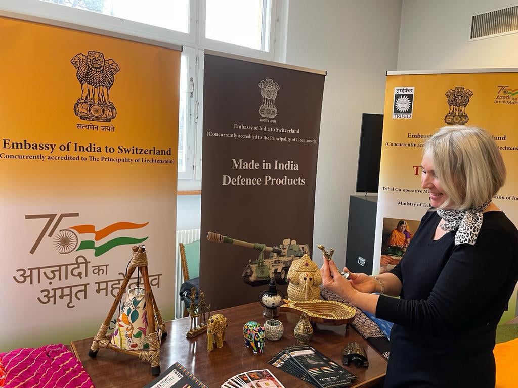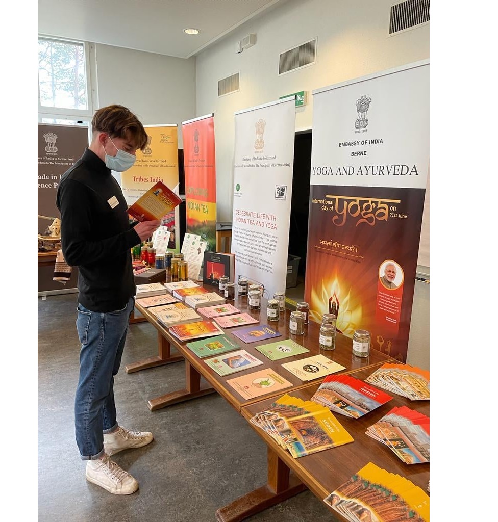 As part of Azadi Ka Amrit Mahotsav celebrations, Embassy of India, Berne organized "Jharokha: Celebrating Crafts of India" Exhibition at Naturhistorisches Museum, Berne. Handicraft and Textile products from all corners of India were on display highlighting the vibrant colours, varieties and uniqueness India is offering to the world. Yoga and Ayurveda lounge added another dimension to the Exhibition showcasing India’s commitment towards wellness and fitness.