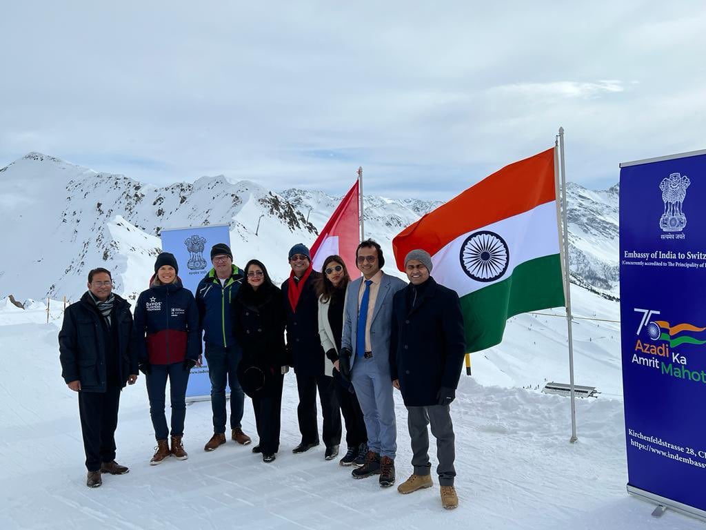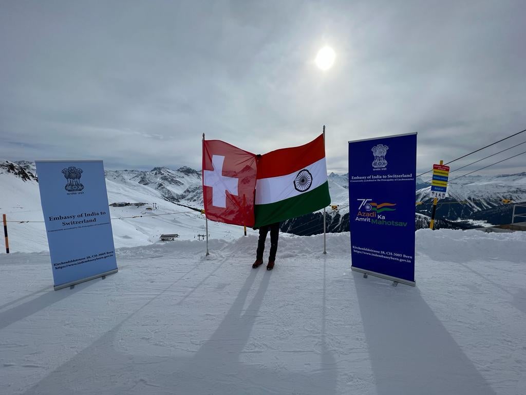 Team India in Switzerland hoisted Indian & Swiss National Flags at Jakobshorn Peak (2590m) in Davos to celebrate Azadi Ka Amrit Mahotsav and mark the Indo-Swiss friendship.