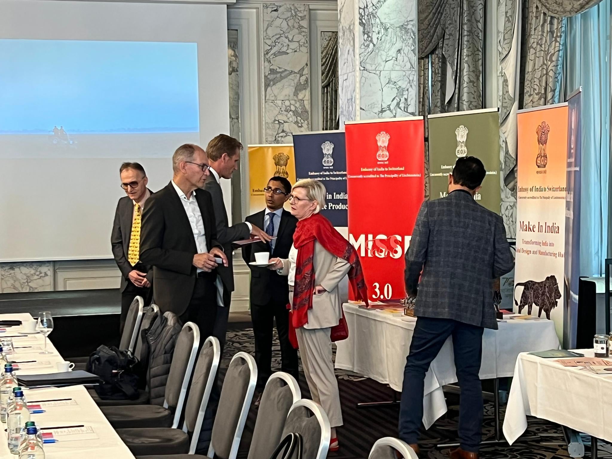 “Make in India”, “TRIFED India”, “Incredible India” and “Yoga & Ayurveda” Exhibition Lounges to promote Trade, Tourism and Technology from India attracted business leaders from Swiss SME companies during MISSP Networking Event organized by Embassy at Hotel Schweizerhof on 9th May 2022.
