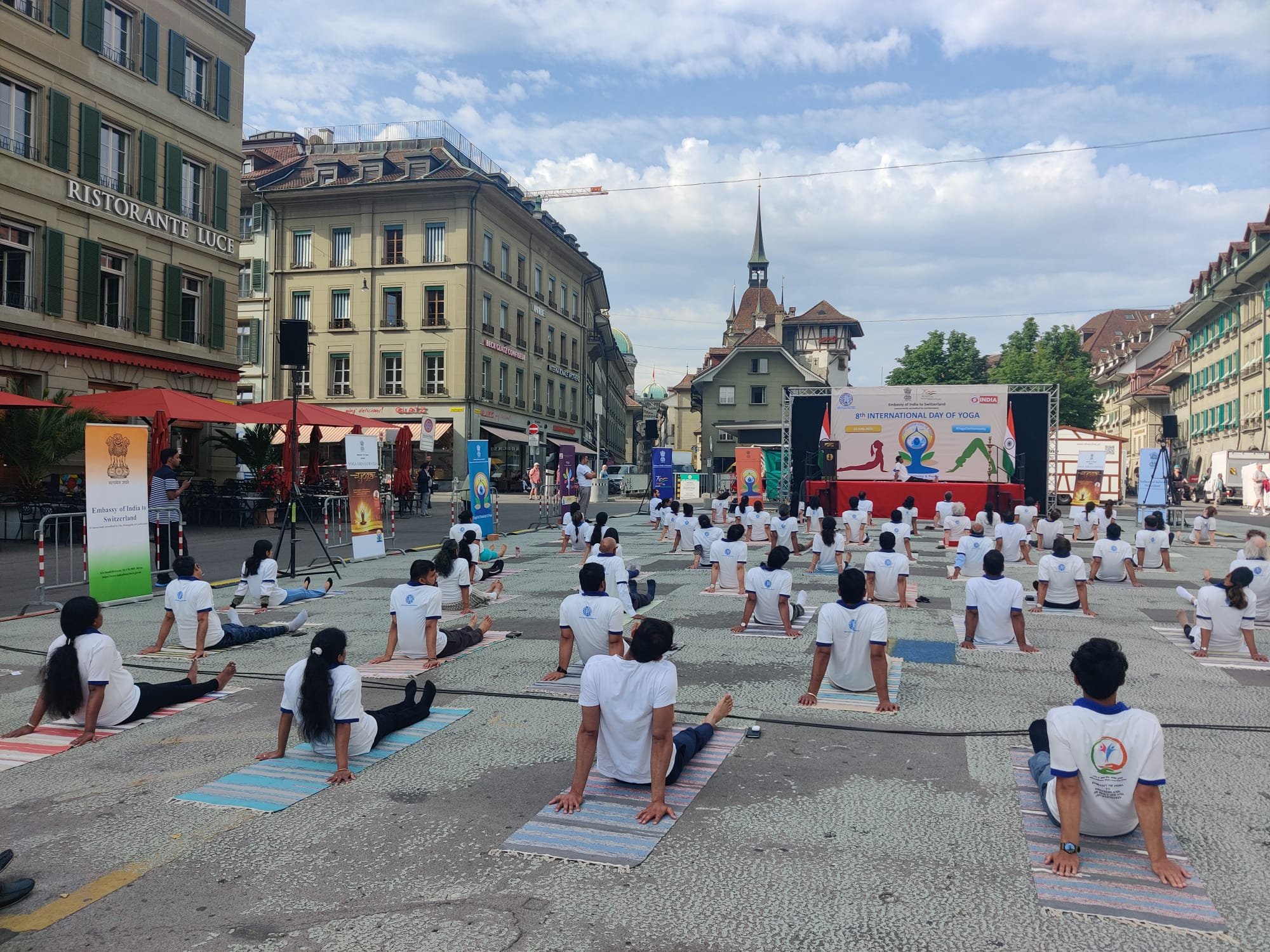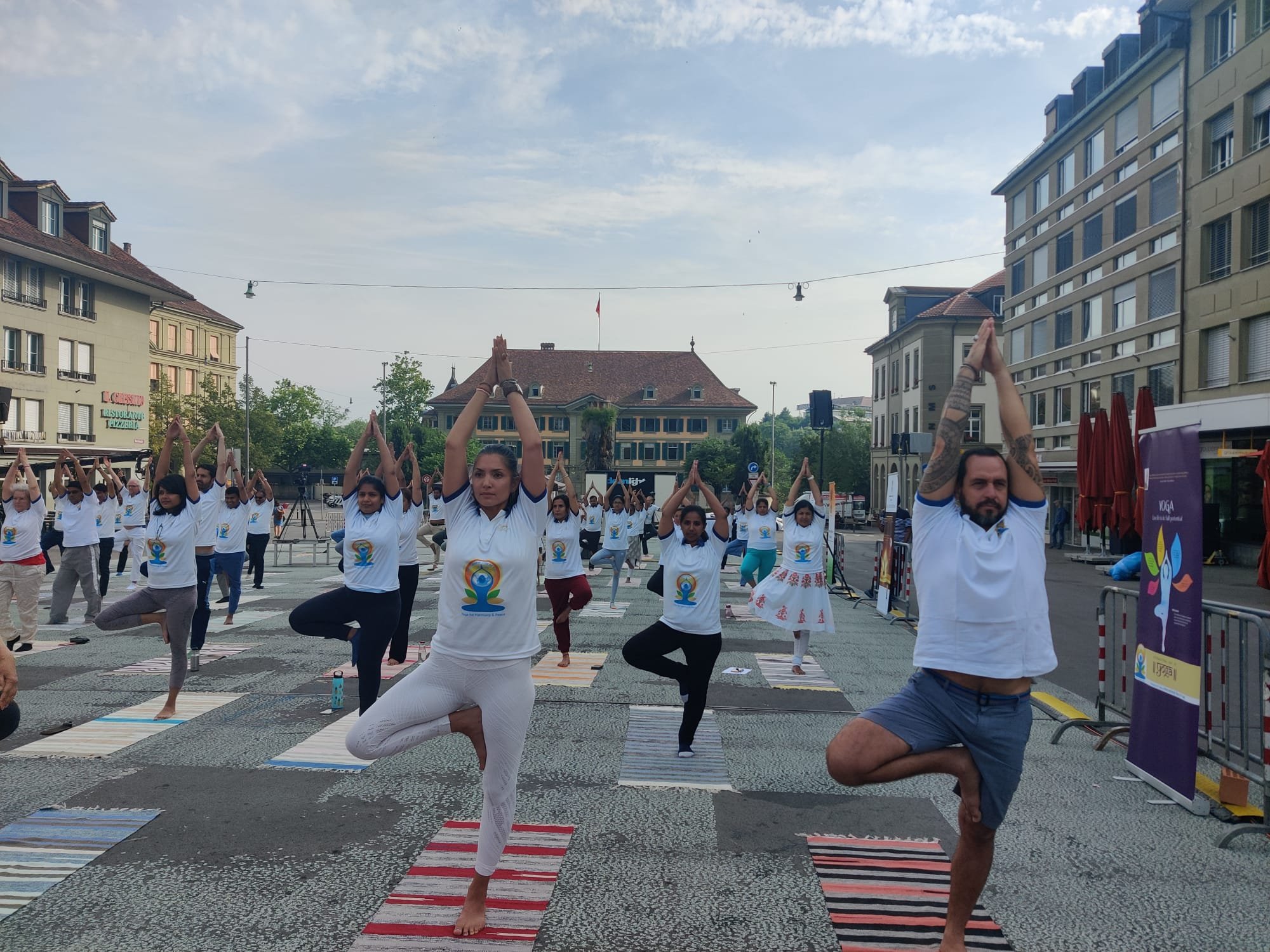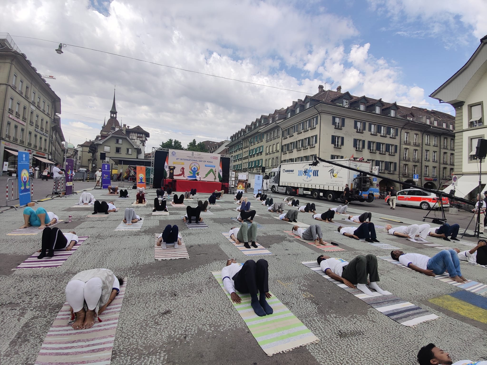 Embassy of India, Berne organized the 8th International Day of Yoga celebrations in Berne, Switzerland on 21 June 2022 . The theme of IDY 2022 was Yoga for Humanity. The event was jointly inaugurated by Mr. Sanjay Bhattacharyya, Ambassador of India to Switzerland & Liechtenstein & Mr. Alec von Graffenried, Mayor of Berne. The event was held at Waisenhausplatz, an iconic location in the center of city Berne.