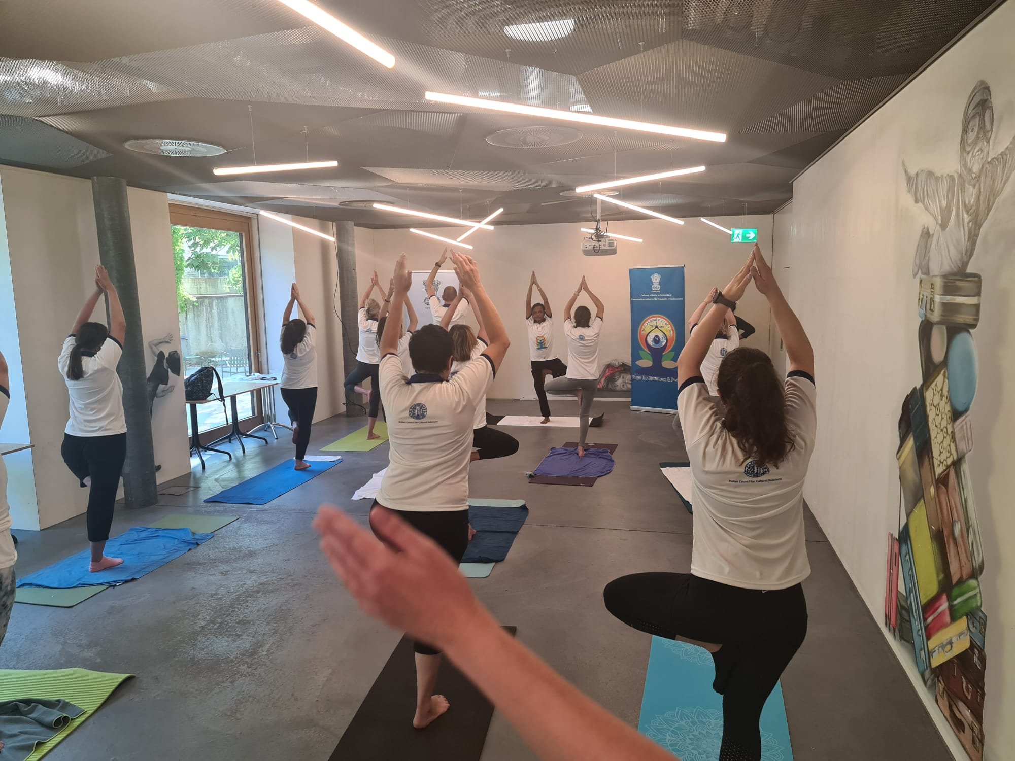Embassy of India, Berne and Maheshwar Yoga, Basel jointly conducted a yoga session at Basel as a part of the ongoing celebrations of 8th International Day of Yoga on 26 June 2022.
