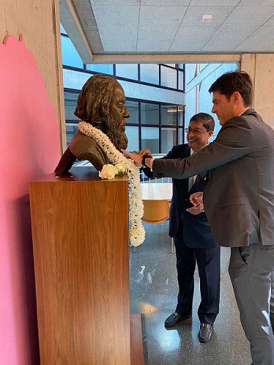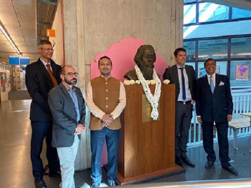 Ambassador Sanjay Bhattacharyya met Mr. Frederic Herman, Rector of the University of Lausanne on 08 August 2022 and discussed ways to further develop academic exchanges. During the visit, Ambassador also paid homage to Rabindranath Tagore at his bust in the University premises.