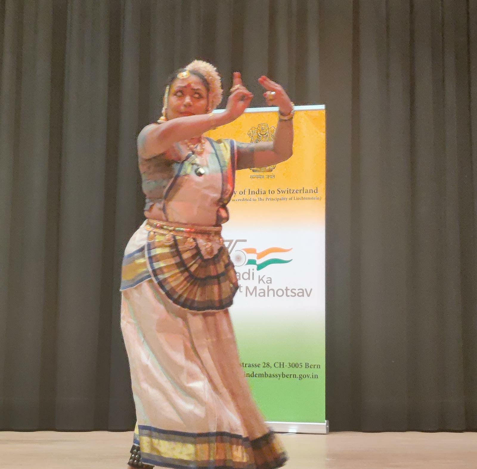 Embassy of India, Berne organized Mohiyattam & Kalaripayattu performance by ICCR sponsored cultural troupe led by Ms. Radhika Menon in association with Keli Swiss Association & Teamwork Arts as part of the celebrations of AKAM Iconic Week & 75th anniversary of India-Swiss diplomatic relations in Zurich on 24 September, 2022.