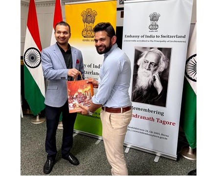 Embassy of India in Berne observed the 162nd Birth Anniversary of Rabindranath Tagore at Chancery. Team India paid tributes to Gurudev Rabindranath Tagore on his Jayanti by organizing a photo exhibition on Tagore’s paintings followed by a quiz on ‘Life of Tagore’.