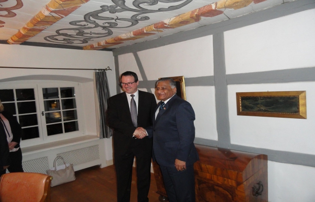 Hon'ble Minister of State for External Affairs of the Republic of India, General Vijay Kumar Singh (Retd), is paying the first Foreign Ministerial visit from India to the Principality of Liechtenstein, on 18 April 2016. On his arrival this evening in Vaduz, he was greeted with great warmth and had excellent and detailed discussions with Mr. Thomas Zwiefelhofer, Dy. PM, Minister for Home Affairs, Justice and Economic Affairs of Liechtenstein - on how to give greater substance to bilateral relations. Liechtenstein has significant high-tech industrial capabilities and has invested in manufacturing in India, employing thousands of Indians. Discussions will take place tomorrow with the Foreign Minister Dr. Aurelia Frick, followed by a call on H.S.H. Hereditary Prince Alois.