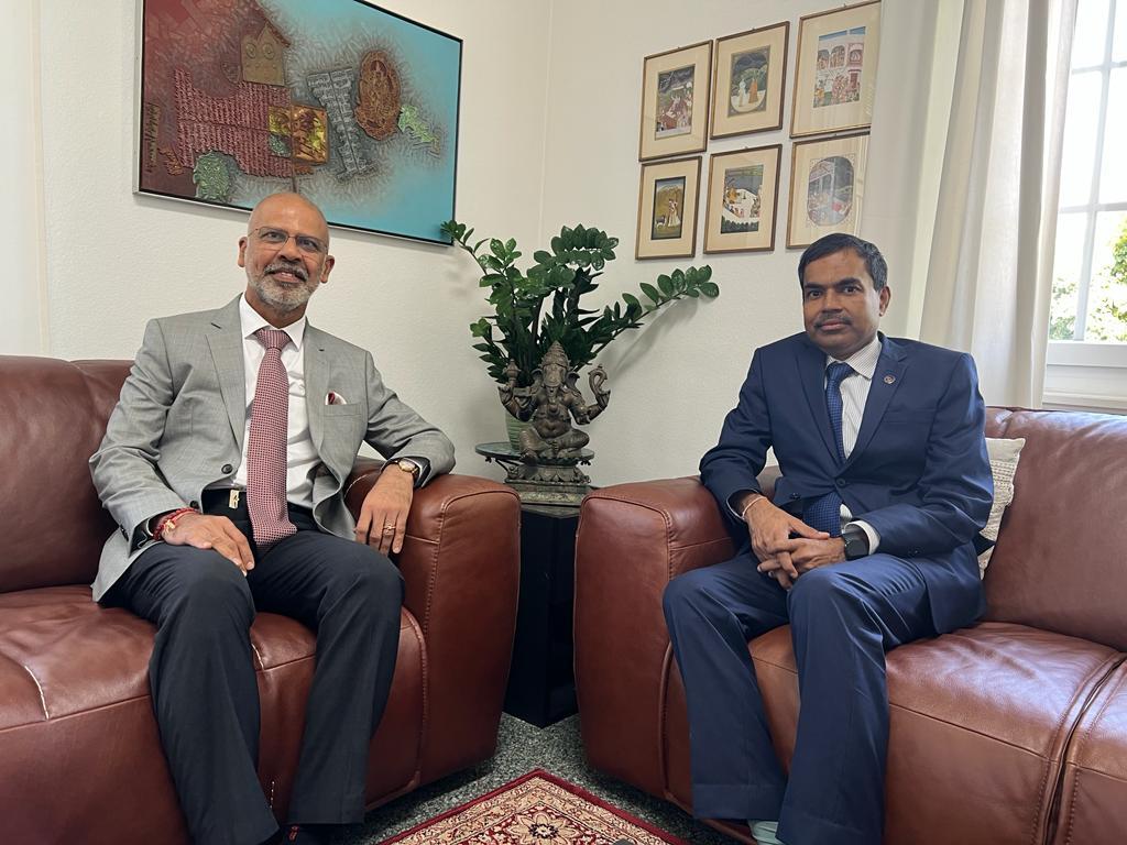 Ambassador Mridul Kumar received Thakur Subhash Sinha, Coordinator, Asia-Pacific and South-South Cooperation, UPU at his office in Bern on 31 July 2023
