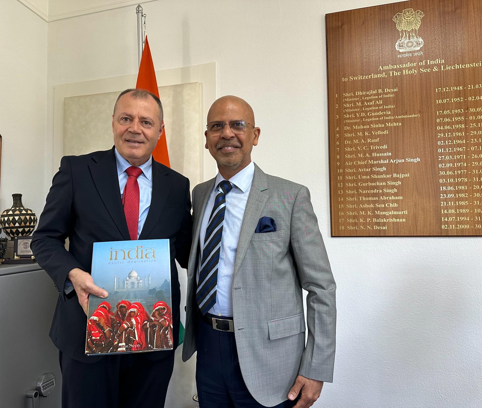 Ambassador Mridul Kumar received H.E. Mr. Mustafa Nano, Ambassador of Albania in Switzerland, at Chancery on 05 April 2024