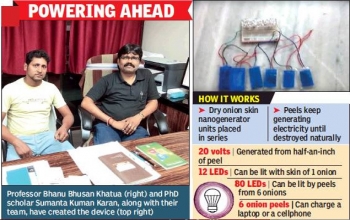 "This is the first time that a nanogenerator has been designed using onion peel as the medium for generating electricity. Onion peels are bio-degradable and bio-waste material. Unlike other piezoelectric materials, they don't require pre-treatment or electrical polling. We just have to place the onion peel-based nanogenerator, connected with the smart electronic devices, under the mechanical or bio-mechanical energy sources," said Khatua.