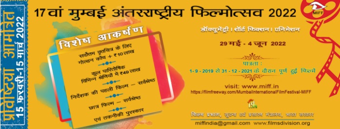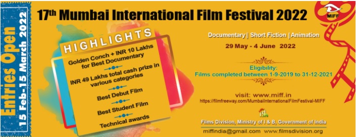 The 17th edition of Mumbai International Film Festival for Documentary, Short Fiction and Animation films (MIFF-2022) will be held from 29 May to 4 June, 2022 at the Films Division complex, Mumbai.