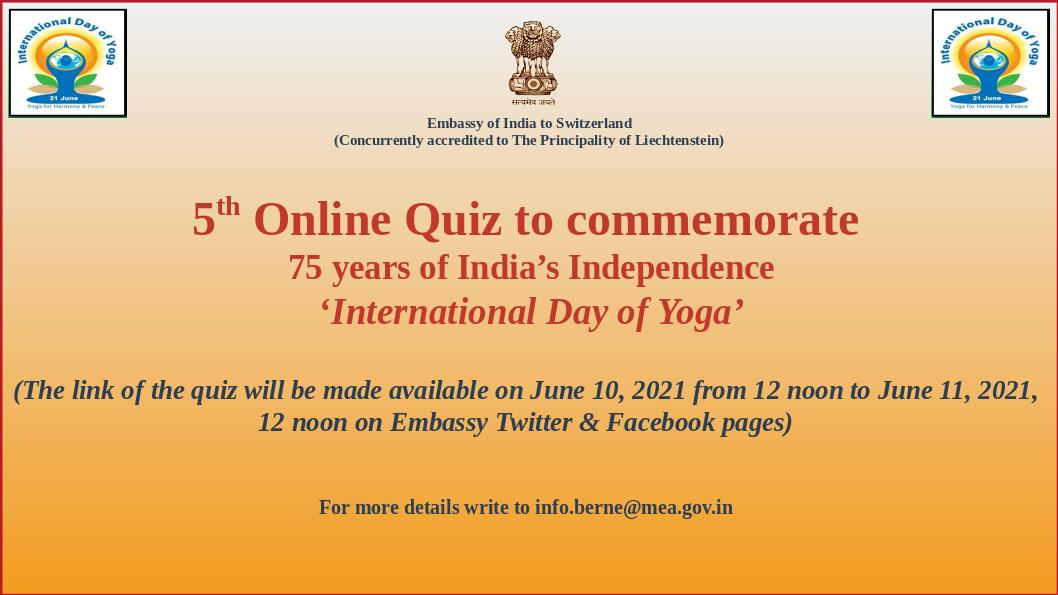 About Us 5th Online Quiz to commemorate 75 years of India's Independence on the theme 'International Day of Yoga'