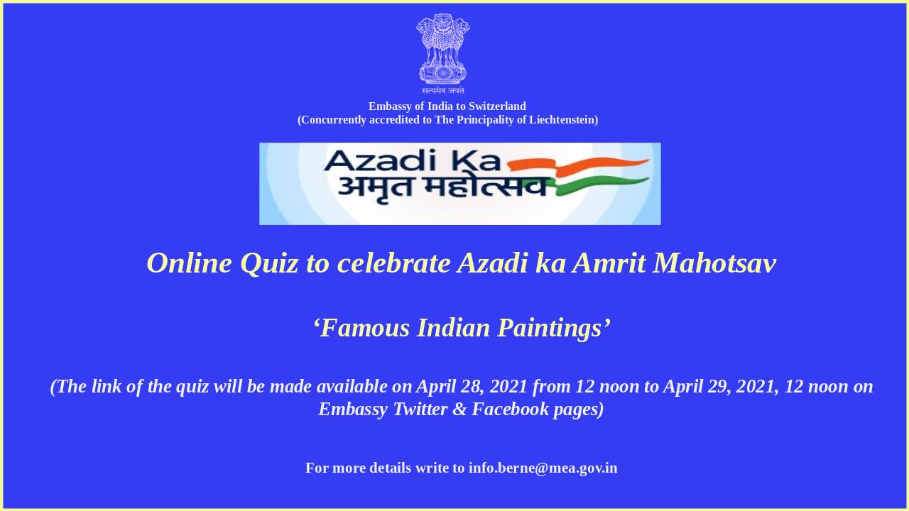2nd Online Quiz to commemorate 75 years of India's Independence on the theme 'Famous Indian Paintings'