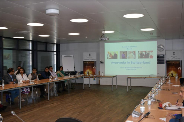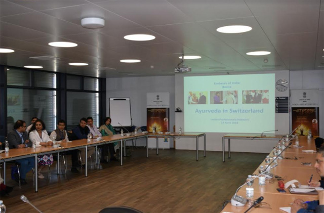 Embassy of India held a meeting on the theme ‘Ayurveda in Switzerland’ in Berne on April 13. Renowned Ayurveda physician Dr. G. Geetha Krishnan, MD (Ayurveda), delivered a talk on the principles and practice of Ayurveda, including its integration with Allopathic medicine and surgery. The meeting was attended by Switzerland-based Ayurveda practitioners and experts, who discussed an Action Plan for generating Ayurveda awareness in Switzerland.