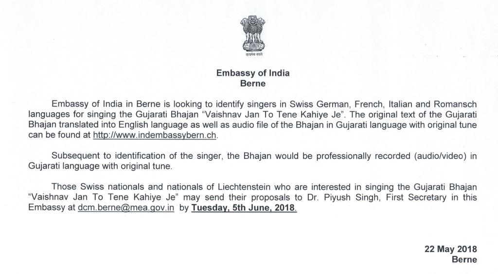 © 2018 Embassy of India, Berne, Switzerland. All Rights Reserved.