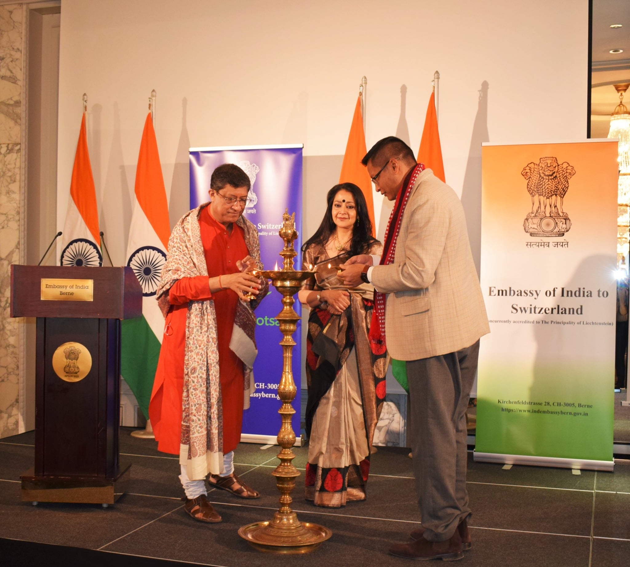 As part of Azadi Ka Amrit Mahotsav celebrations in Berne on 04 March, 2022, Ambassador Sanjay Bhattacharyya inaugurated the event "Cultural Interaction with Indian diaspora" and addressed the gathering. Heads of Indian Diaspora Associations in Switzerland and Liechtenstein and invitees from cultural space attended the event. Bharatanatyam performance by diaspora artistes also formed part of the event.